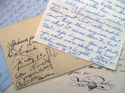 Letters from the Brehman collection including a postcard from Picasso, Paul Elouard, Man Ray, Gala, Roland Penrose and others