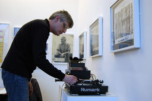 This Wednesday saw the first of our ‘open deck’ sessions for vinyl record enthusiasts. These events are being organised by Leon Parker of the British Record Shop Archive who has worked tirelessly with CHELSEA space to make the Dobell’s show happen, ever passionate about the importance of independent record shops, irrepressibly energetic in sourcing materials and making contacts.