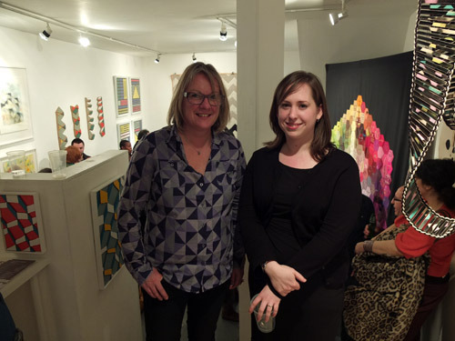 Ashley Family Foundation Research Fellow at CHELSEA space, Daisy McMullan, (right) with textile designer Melanie Bowles at the opening of Geometrics Volume 1