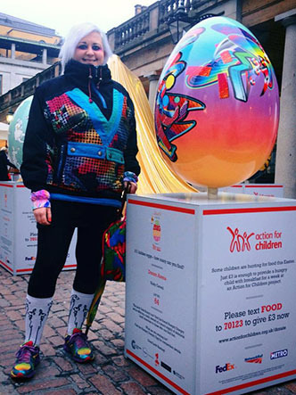 Also in the audience for James Mackay and Stuart Comer’s talk and screening was Nicky Carvell who showed with us in Red White and Blue: Pop Punk Politics Place an exhibition that co-incidently featured Derek Jarman’s super 8 film Jordan’s Dance 1977. Nicky was recently invited to customise a large ‘egg’ for the artists’ project The Big Egg Hunt in aid of Action For Children. The artist customised eggs which also include contributions from Graham Hudson and Peter Liversidge amongst 100 others, are going on tour around the country:London Covent Garden, Tuesday 12th Feb – Sunday 17th February; Birmingham, Victoria Square, Tuesday 19th Feb – Monday 25th February, Liverpool, Paradise Street, Wednesday 27th February – Tuesday 5th March, Manchester Exchange square, Thursday 7th March – Wednesday 13th March, Glasgow, St Enoch Square, Friday 15th March – Wednesday 20th March, London Covent Garden Friday 22nd March – Monday 1st April.