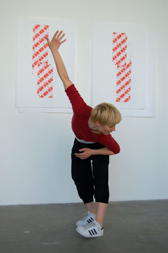 A dancer in front of Alice Channer's work for 'December 1952' directed by Cally Spooner at CHELSEA space in 2009