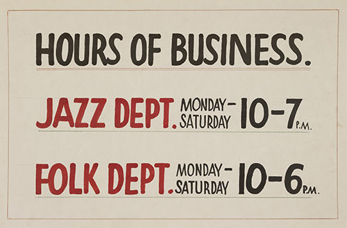 The show includes objects, photographs, posters, record covers and other graphics from private collections and a 1967 portfolio of portraits of Jazz musicians by renowned music photographer David Redfern. We are also grateful to the Museum of London for the loan of original artefacts on show for the first time since the shop’s closure 21 years ago.