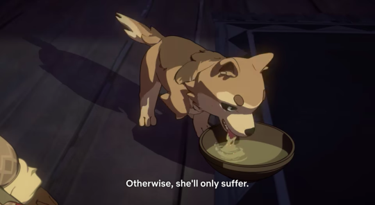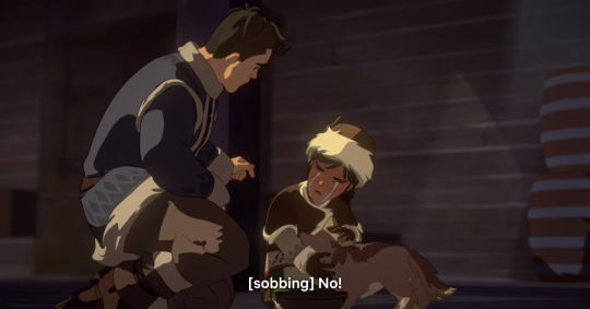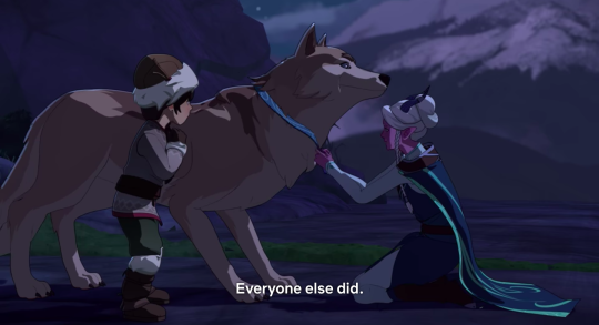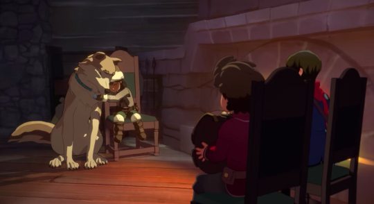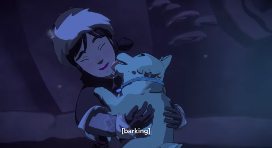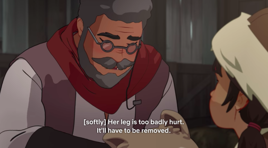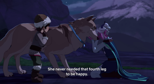 In the middle of the season, the main characters rush to find a cure for the sacred dragon egg (which had been dropped in icy water). They come across a young girl with a pet wolf, who tells the story of how she found the pup in a trap and how the local veterinarian had to amputate her leg: