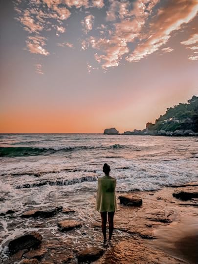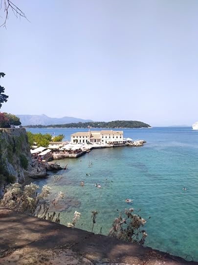 Coming out of the bathroom in my swimsuit, skin smelling of sunblock. M tells me I’m beautiful. Outside, the heat steals my breath. I swim from the buoys to the beach, clear, emerald waters cooling my skin.
