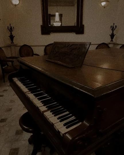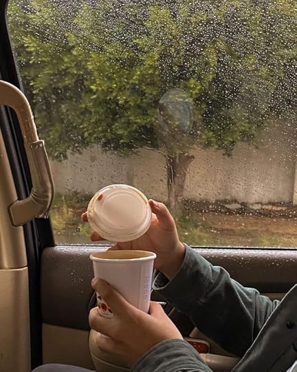 Showering while he’s cooking. The sea calming down, filling out window, the sky pink with sunset.