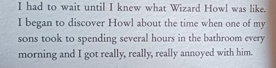 Im sick with flu so naturally I picked up my newly bought copy of Howl’s Moving Castle which includes DWJ interviews in the back.