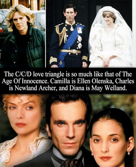 “The C/C/D love triangle is so much like that of The Age Of Innocence. Camilla is Ellen Olenska, Charles is Newland Archer, and Diana is May Welland.” - Submitted by Anonymous