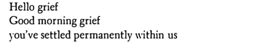 [Text ID: Hello grief / Good morning grief / you’ve settled permanently within us]