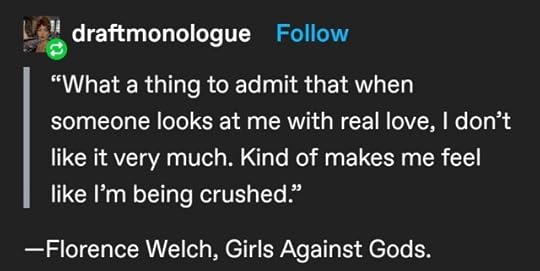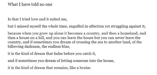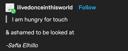 “I did not like to be touched, but it was a strange dislike. I did not like to be touched because I craved it too much. I wanted to be held very tight so I would not break.”