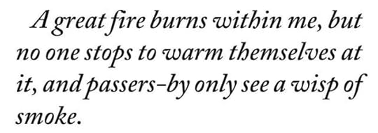 [text ID: A great fire burns within me, but no one stops to warm themselves at it, and passers-by only see a wisp of smoke.]