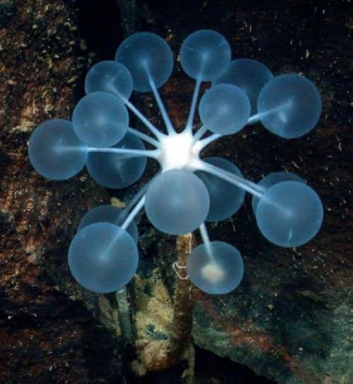 It’s a carnivorous deep-sea sponge that lives off of Easter Island and never sees the light of day, as it’s about 9000 feet down. Those delicate-looking orbs are covered in millions of tiny hooked spines, which latch onto anything unfortunate enough to bump into it, and hold it in place as it is digested alive by the sponge’s skin. Amazing, beautiful and profoundly creepy. They could have given it so many cool names. Could have drawn on mythology (I think Scylla would have been an appropriate reference), the region it was found in, the textured skin, PHAGOCYTOSIS, anything!