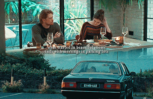 “Do you remember at Melissa’s birthday after we kissed? I stayed in my room and I waited for you for hours. I felt paralyzed by the idea that you were close by and you might come back. I have this impulse to be available to you all the time.”