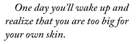 [text ID: One day you’ll wake up and realize that you are too big for your own skin.]