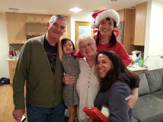 With Tim's daughter Mary Kate - December 2016The people whose lives intersect with ours at all stages of life -- school, work, child-raising, retirement -- are all part of the delicious love that surrounds us. Some are easier to embrace, to share loving feelings with than others. But surrounding ourselves with love means reaching out in many ways. In my own life, I reach out to my dear friend Mary with frequent visits to her and to her ailing husband John and, in between, sharing and enjoying insights into life present and future; to my husband Bob, to our "surrogate son" Ryan, my lifelong friend Pat and to my family in ways that celebrate the people they have grown to be; to the special people with whom we can share our authenticity, including silliness; to those we rarely see but are often in our thoughts.
