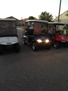 We started the Caravan five years ago, having come from places where kids swarmed our front porches in search of treats on Halloween night. But no kids crossed from the all ages section of our community to Sun City on Halloween night 2010. Our doorbells didn't ring. Our spirits sagged...until we decided to hop in our golf carts, bowls of candy in hand, and drive over to the all-ages part of the community in search of kids. Since then, it has become a highlight of October, a great start to the holidays. Even after Bob and I sold our golf cart to get a small second car two years ago, I have continued to participate thanks to Joe and Pat, who invite me to ride along in their golf car jumpseat to distribute Halloween treats.