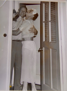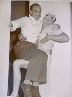 Halloween was his favorite day of the year. He would get all dolled up, as he used to say, and gather us together for a grand trick or treating adventure, marching proudly in his high heels down the center of the street, with us following like eager ducklings. At each home, he would greet whomever opened the door with an enthusiastic hug and kiss while we scrambled around at his feet collecting candy dropped by stunned homeowners. At the time, we thought it all was simply hilarious. Only now, looking over the pictures our father took of Jack in his Halloween finery, do we sense something different. "Jack looks very comfortable in his outfit," Mike remarked after reviewing the old pictures with me. "I suspect it was only on Halloween that he could safely take it outside. It must have been some respite from a life of quiet desperation in 1950's La Canada." And we remembered how quietly and quickly Jack and his family moved away when we were still very young.