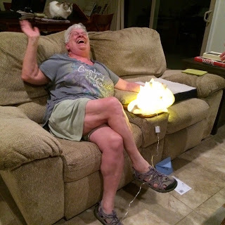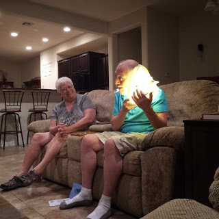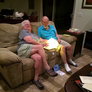 Mary and Bob started laughing, too. We passed the lamp around, wiping our eyes and giggling. "It makes me laugh whenever I look at it," I told Mary. "It will be my happy place to go when I'm feeling down. Thank you so much! It will make me smile and laugh and think of you."