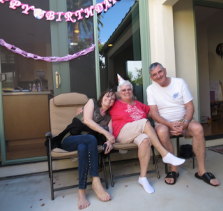 The celebration lingers in my heart with a new understanding of what it means to mark a significant birthday memorably. It isn't about presents or lavish meals. It's about being remembered by people who matter so much, loved ones who are family or treasured, longtime friends as well as new friends here. It's about sharing the celebration with special people who took the time -- in Mary's case, four days out of her busy life -- to let me know they cared.