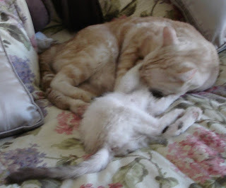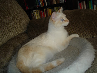 I knew that one cat never replaces another but, some months after her death, I yearned for another smart and sweet Siamese mix, preferably a flame-point -- a mixture of red or orange tabby with Siamese. There were no flame points available in local rescue groups or shelters then -- and would not be until a kitten named Hamish became available to us in 2012.