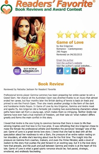 In advance of the May 4th release of my novel, I am very excited to announce that Readers' Favorite has given GAME OF LOVE a shiny Five Star Review.