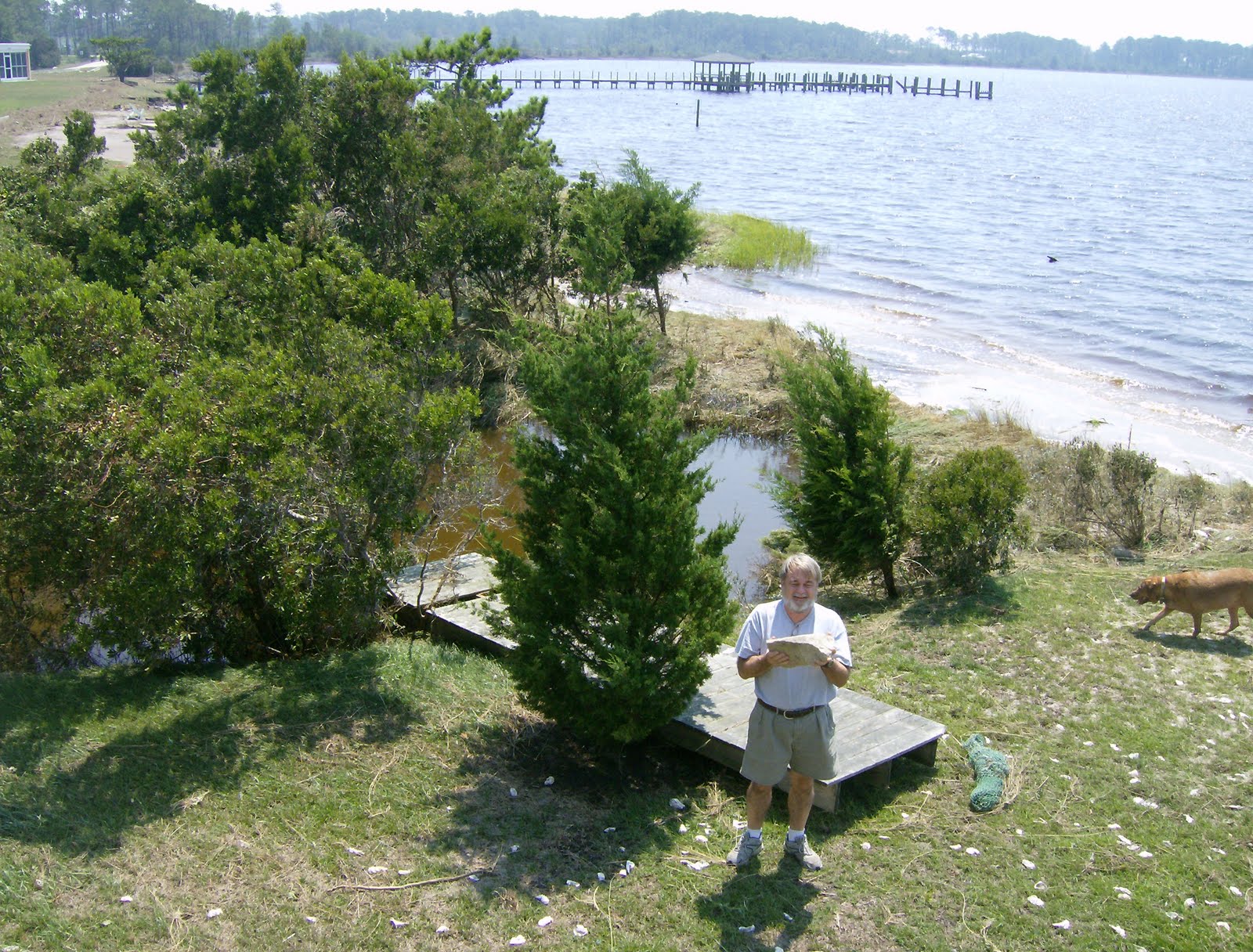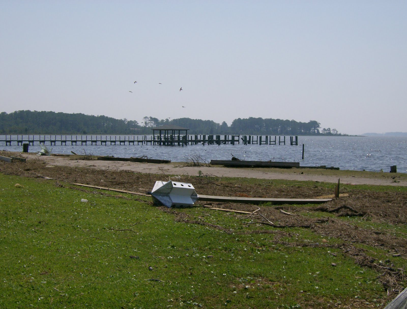 We spent the day yesterday at Sea Level assessing the damage and working with our neighbors to clear up debris. One of our friends ended up in the hospital with a stroke, unfortunately. But we're hoping he weathers it and is home, soon. There were a lot of trees down on phone lines and a lot of houses got flooded out again. Many of the homes between Moorehead City, though Beaufort, Stacy, Davis, Otway, and Sea Level had their doors and windows open with big piles of carpeting outside as folks tried to dry out. The water came up to the fourth step of our house (about 2-3' up) but didn't make it into our house at Sea Level. We're hoping the waves didn't wash into the air conditioner unit, either, but we won't know how well that fared until the electricity comes back on. We were sorry to see the Martin house next door blown down, but we're thinking of getting a new one and setting it up so that when the Martins come back next spring, they'll have a place to live.
