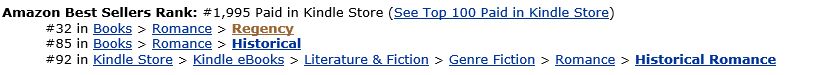 The results have been everything I could have hoped for. Back in 2011, several of my Regency mysteries did very, very well (The Vital Principle and the Regency romantic mystery, A Rose Before Dying ) but I had never been able to crack that "2,000 in all Kindle books" bestseller barrier. This time, I did. On Saturday, March 23, I got a ranking of 1,995 in all Kindle books!