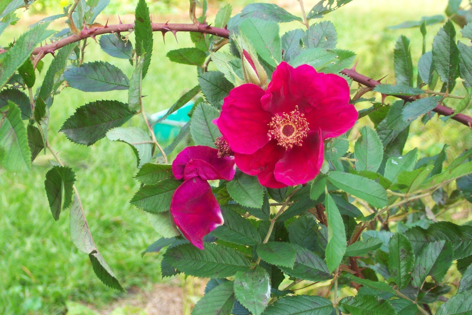 For the most part, Rugosa roses stay relatively short and need little care, including very minimal pruning. There has been an increase in interest in Rugosa roses lately since they do require so little care, they bloom all summer, and are fragrant. Even Jackson & Perkins has begun selling more Rugosa because of their easy-care qualities.