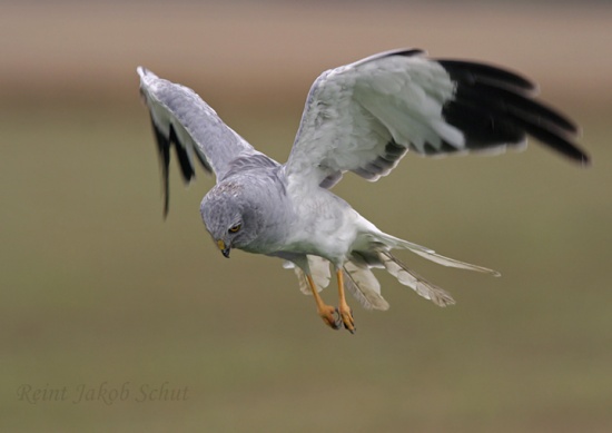 Northern Harrier - We've had both male and female Norther Harriers working the fields in front of the house. When I first spotted the male "gray ghost" he was hovering low over the winter wheat before starting to glide back and forth dissecting the field in his search for rodents. The brown female has been here less, but one or the other is always working the fields.