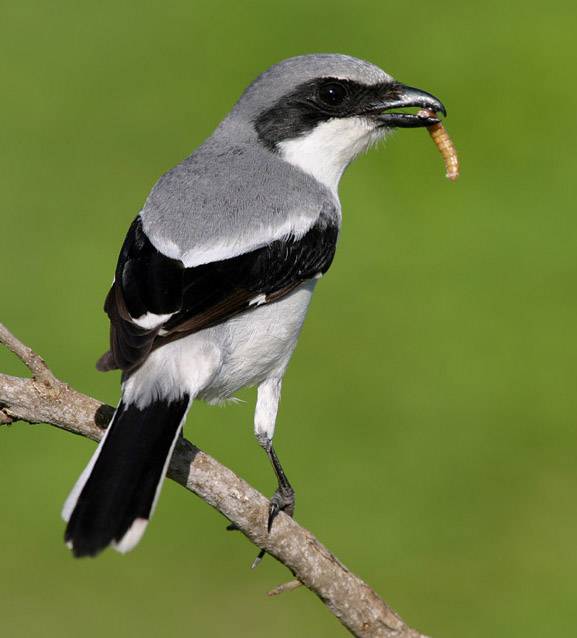 Loggerhead Shrike - We are very privileged to host the occasional Loggerhead Shrike, which upon first glance I often mistake for a Mockingbird with "something just not quite right" about it. The shrike has a favorite perch on a telephone line near a small stand of trees at the edge of our property. I've only seen him twice in the last week, but he does seem to be hanging around the area.