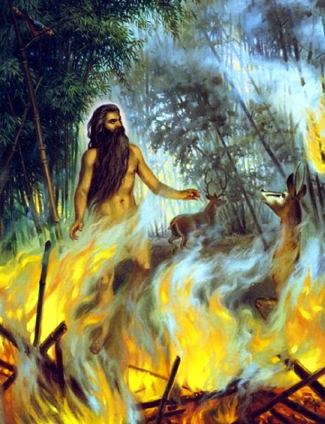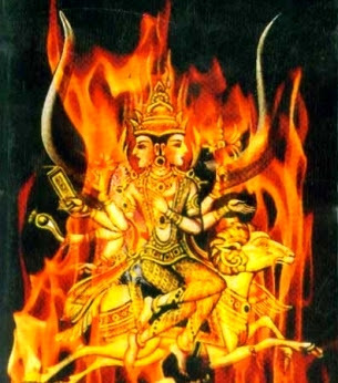 Till now, we have seen the benign and beneficient properties of Agni, let us now take a look at the destructive aspect of his personality.