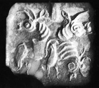He rides a ram, or a chariot pulled by goats which probably is a reference to the use of these animals for sacrifice. Interestingly, most forms of fire-worship in Graeco-Roman religions also involved burning the sacrificed animal on a fire-altar in front of the temple.