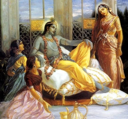 That chariot which is decorated with golden ornaments, yoked with monster-faced mules that have gem studded trappings is ride-able by the wish of the rider, and sitting in such a chariot which is wholly golden and which rides with a sound like the pealing of thunder, that celebrated Ravan, the brother of Kuber and the lord of demons, traveled towards the lord of rivers and rivulets, namely the ocean.