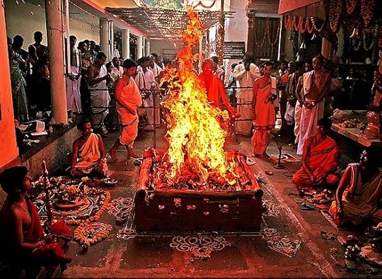 Rig-Veda, places Agni second only to Indra in importance and we find 1/5th of Rig Vedic Hymns dedicated to the Fire-god! In fact, the very 1st verse of the Rig-veda is dedicated to Agni: