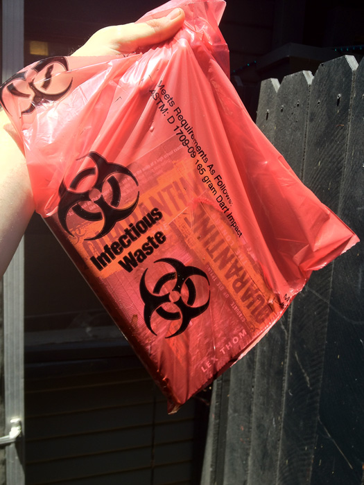 The winner will be sent the book in this Quarantine hazardous material gift bag.
