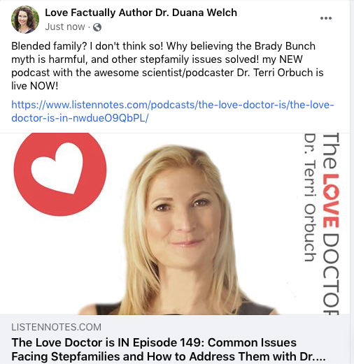 Wise Readers: Blended family? I don’t think so! Why believing the Brady Bunch myth is harmful, and other stepfamily issues solved! My NEW podcast with the awesome scientist/podcaster Dr. Terri Orbuch is live NOW!