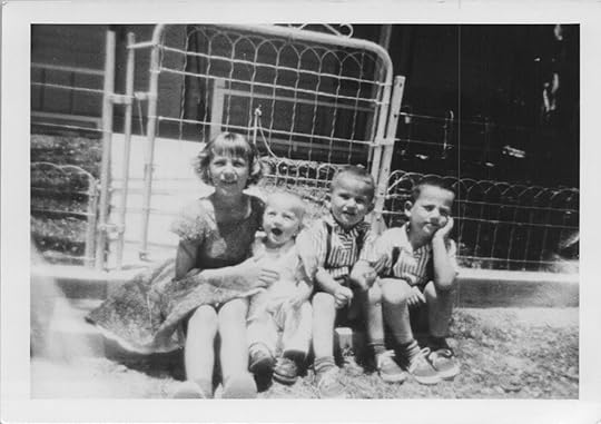 And all of them tell a secondary story beside the original pose. They're a record of living conditions, fashion, life style, family. Heh, the photo above tells a story about my brothers and me that was true back then and is still true now sixty years later. Out there on the right side, my brother Jack is just plain disgusted with the entire process. He'd rather be doing something else. Next to him, Tom is wishing my mother had picked somewhere shady to take the picture. Next to me, Danny thinks this is all a lot of fun. And me? I'm trying to be a lady while sitting on a low stone step surrounded by a gritty, dirt yard.