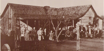 This photograph is my grandfather's family (he's the second from the right) in front of their home at the time. I visited here for a week when I was fourteen. It was hot. No running water. Outhouse was off to the back on the left side. It did have electricity, though. And a well. My great-uncle Bill lived there then (he's the one alllll the way to the right).During my visit there, I had several experiences I will always cherish. Drove Uncle Bill's pickup around on the back dirt roads. It was an old Ford with stick shift--and when I say stick shift, I really mean it was a long metal stick spearing up from the floor. Another day, Uncle Bill let me help shear sheep. Boy, what a mess! Little did I know I was storing up memories to use in future stories.
