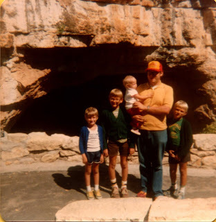 Heh. Was looking through some photos and came across this one from 1979. That's my bunch at Grand Canyon on a cool, damp August day. It rained most of the way as we drove up there from Phoenix where it was much warmer--hence the shorts on the kids. But the Grand Canyon cuts through a high plateau so the temps were much cooler.A lot has happened since this photo was taken. The kids all grew up. The youngest, cradled in her daddy's arms is now a momma with a daughter graduating in a few short days. I look at this picture and remember this wild trip, 3300 miles, camping out every night, traveling the hot searing roads from Houston to Carlsbad Caverns to Phoenix, Grand Canyon, Petrified Forest, back across New Mexico, Texas, to northern Oklahoma for a family reunion and then finally back home. We arrived in our driveway with about $3 and change in our pockets.