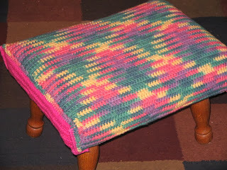 But the hunk wasn't happy with that frayed cover. So he crocheted a cheerful new cover for my little stool. Last night he finished it--and wielding his staple gun--recovered the stool. Not all gifts cost hundreds of dollars. The gift of thoughtfulness and love is worth the most.