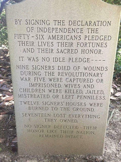 Some folks bemoan the lack of respect for the flag or the national anthem or other patriotic issues, but the truth is more subtle than that. As a nation, we've forgotten what this date was chosen to commemorate. If we were to ask the average citizen why we celebrate, most of them wouldn't be able to explain any particulars past the bare event denoted as our nation's birthday. MOST have no idea what the Declaration of Independence is all about. They don't know the real sacrifices made by the men--and women--who dared to stand up for what they believed to be right.