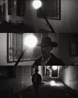 underworld to reach her. He passes a lamp which leans across the street and quietly
