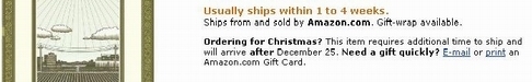 The bad news is, they won't be getting new copies in for one to four weeks, and can't guarantee shipment by Christmas.