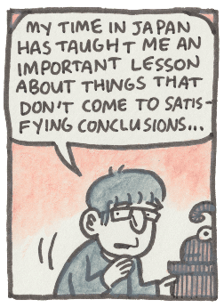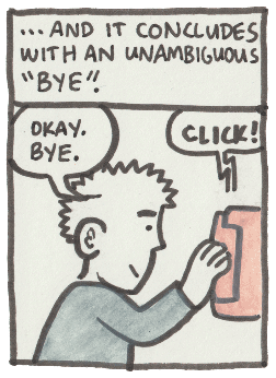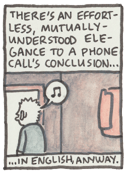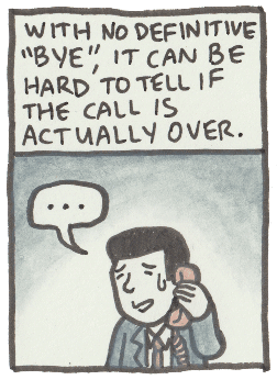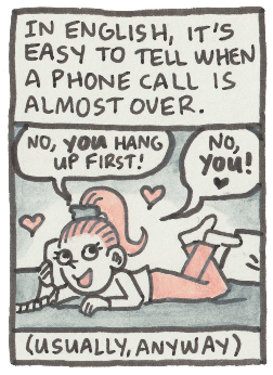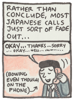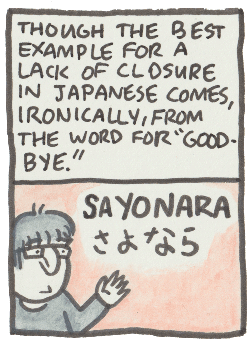 Closure.: A comic about why it’s easier to end phone calls in English than in Japanese, and why the word “sayonara”, ironically, doesn’t provide closure.