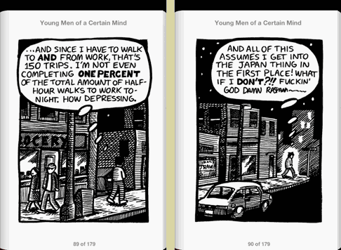 To introduce this final installment of the preview of Young Men of a Certain Mind, I want to briefly write about the way I formatted the iBooks version of the comic, cuz I’m pretty proud of it.