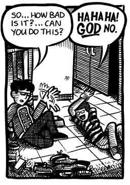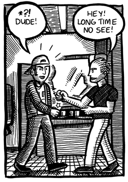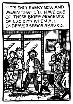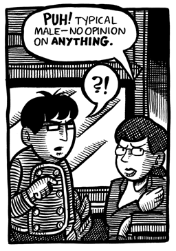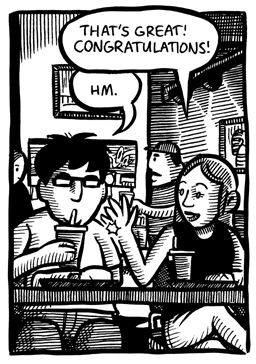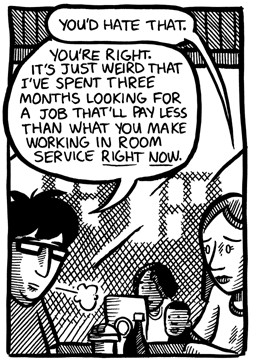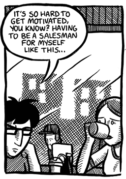 I’ll admit there’s really not much to Young Men of a Certain Mind in terms of story. It’s more supposed to be a slice-of-life type thing more than anything else. But for a comic that’s almost a decade old, I still think it holds up. It’s the oldest comic I’ve done that I can still read without cringing in embarrassment. (How’s that for a ringing endorsement! Buy it now, folks! Ha… ha…)