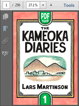 A few people have asked about a PDF version of The Kameoka Diaries: Volume One, so for the past couple weeks I’ve been working on that. It’s almost done, and I’ve started looking into ways to sell/distribute it. (Speaking of which, if anyone knows of good services for selling digital downloads, lemme know!)