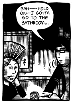 Whoa, what an exciting cliffhanger!! Will our hero make it to the bathroom okay??? Check out the forth and final part of the preview to find out! It’ll be up next Friday or so (probably).