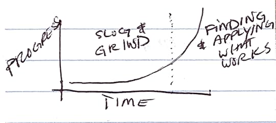 In between, there is a tipping point (the dotted line). You can’t predict it. It’s different for everyone. As you get close, you start to feel it’s coming, even if the results aren’t quite there.