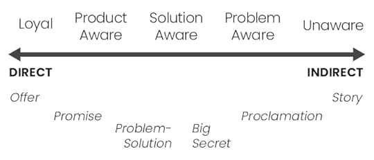 The authors describe the value of tailoring your message relative to the customer’s knowledge of your brand and product – this is the customer awareness scale.