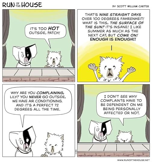In addition to continuing to publish two Run of the House cartoons a week, I’ve been working on a shorter standalone novel and some short stories. I’m in the process of putting together a new short story collection that I’m pretty happy with. Hopefully get that one out soon. Productivity has only been so-so this summer, partly because of all the life-related happenings I mentioned above, and partly due to allowing myself to get a bit too obsessed about the political turmoil here in the United States, but such is life. Yet even as I slowly get back up to speed, there never seems enough time to do everything.